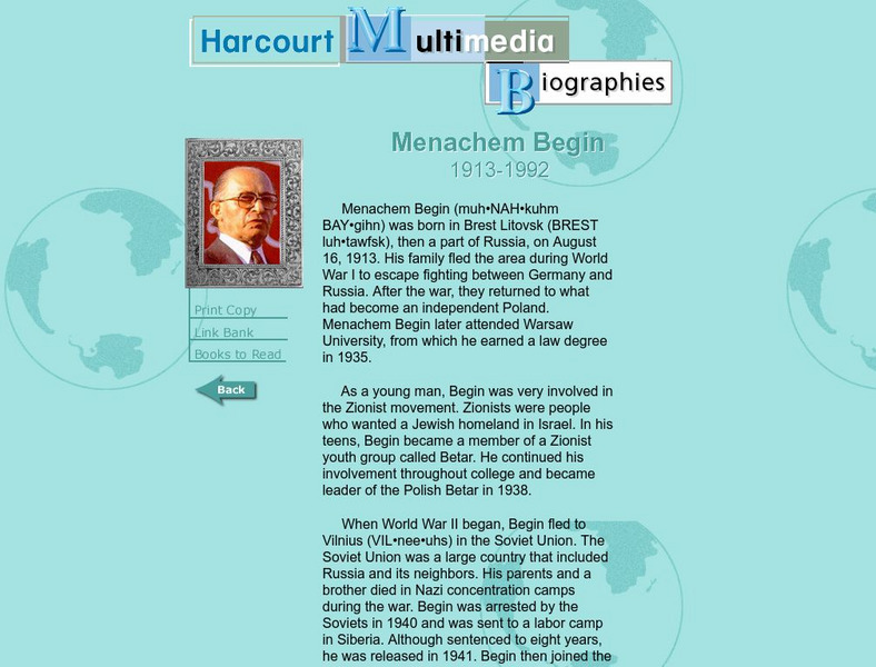 Harcourt: Biographies: Menachem Begin 1913 1992