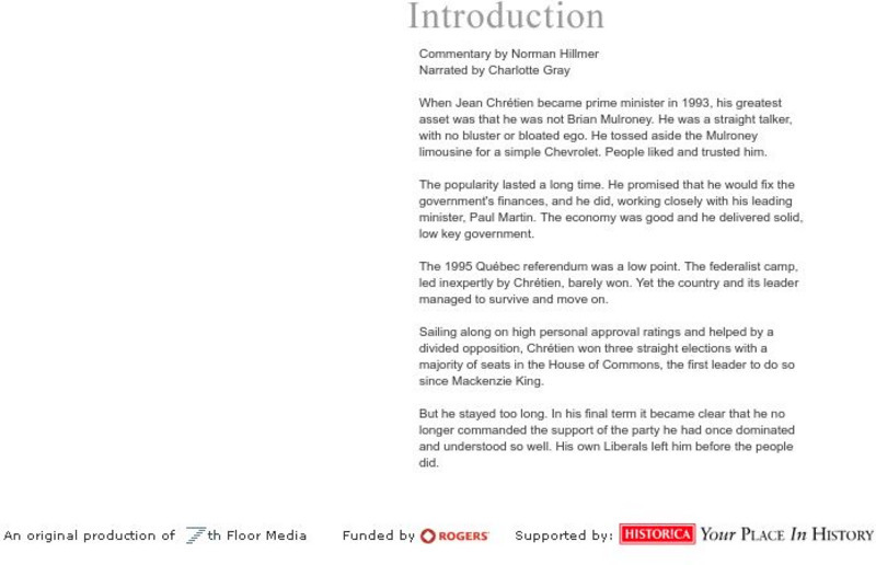 Historica's the Prime Ministers of Canada: Jean Chretien