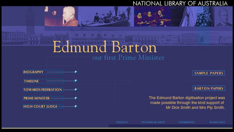 Online exhibit that traces the life and career of Australia's first prime minister, Edmund Barton.