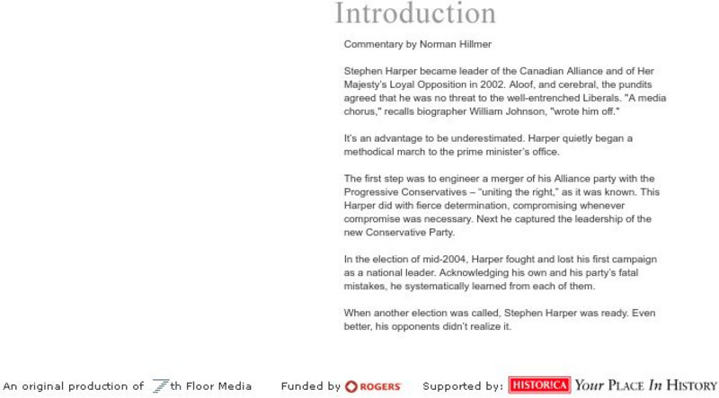 Historica's the Prime Ministers of Canada: Stephen Harper