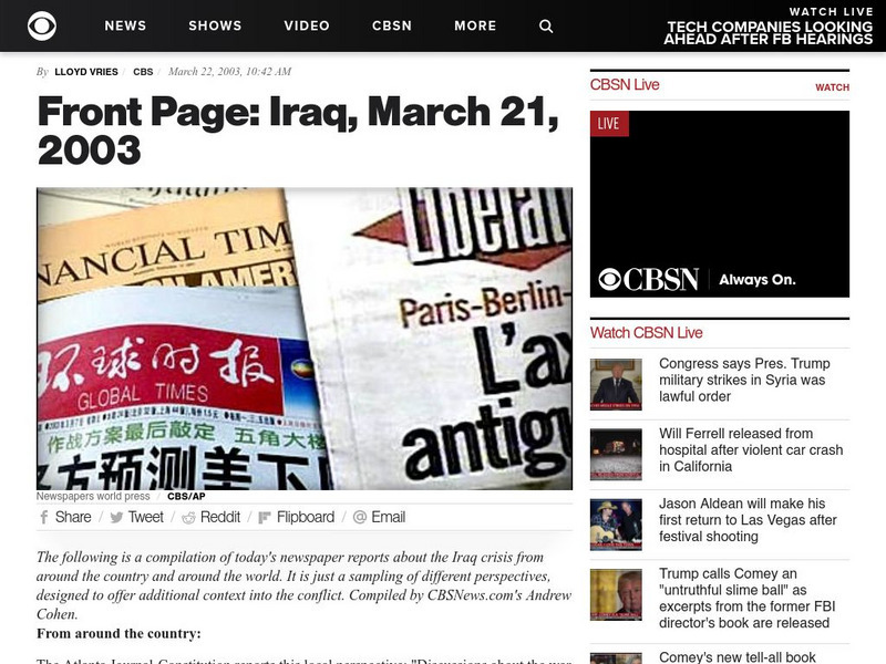 Front Page: Iraq, March 21, 2003