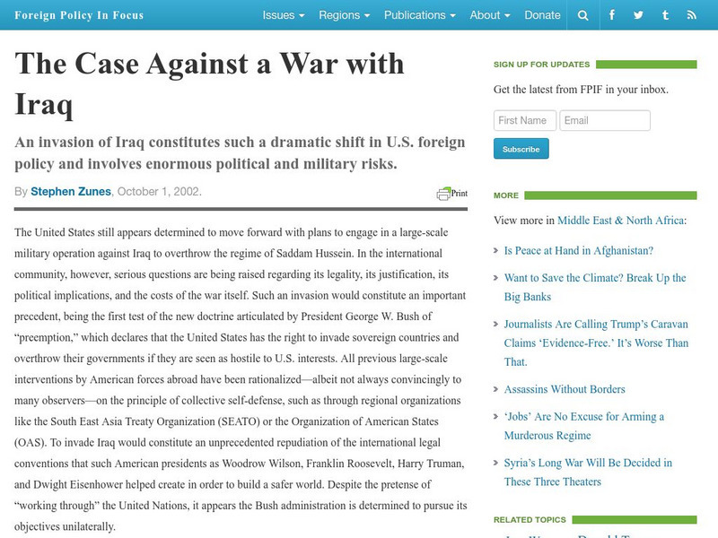 Foreign Policy in Focus: The Case Against a War With Iraq