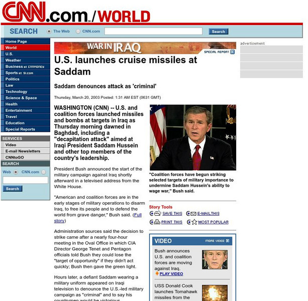 Cnn: u.s. Launches Cruise Missiles at Saddam