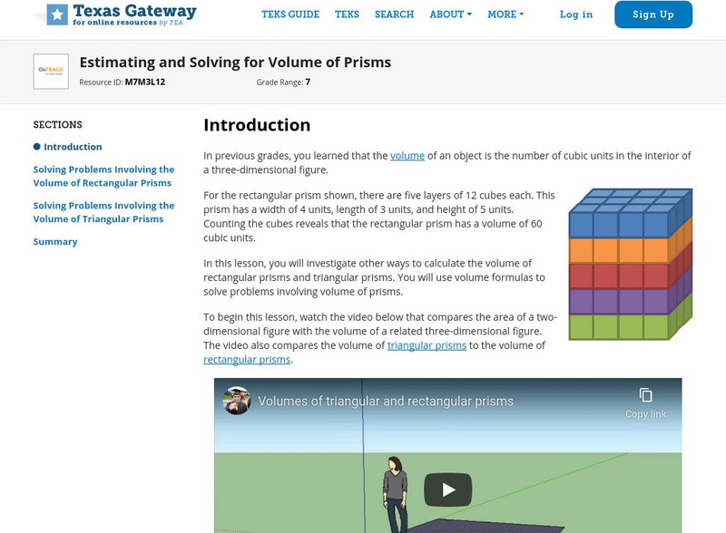 Texas Gateway: Estimating and Solving for Volume of Prisms