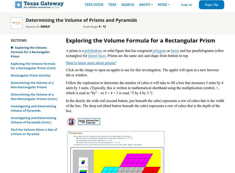 Texas Gateway: Determining the Volume of Prisms and Pyramids