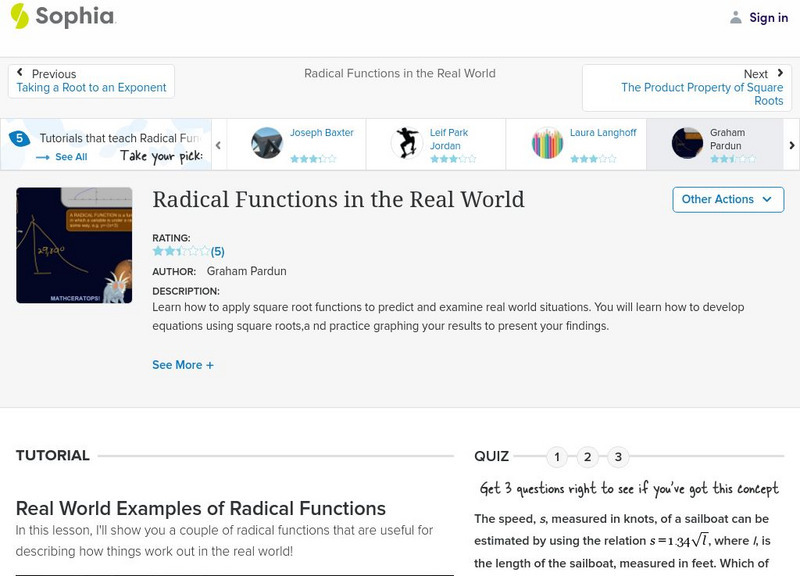 This video tutorial demonstrates how to write and solve radical functions using real-world scenarios. Students can check their understanding with an assessment.