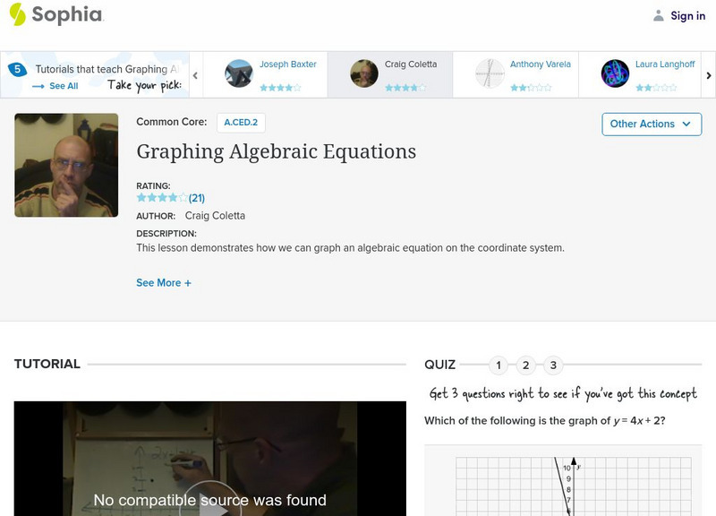 The video lesson demonstrates how to graph a linear equation. Students watch as points are plotted to graph a line.