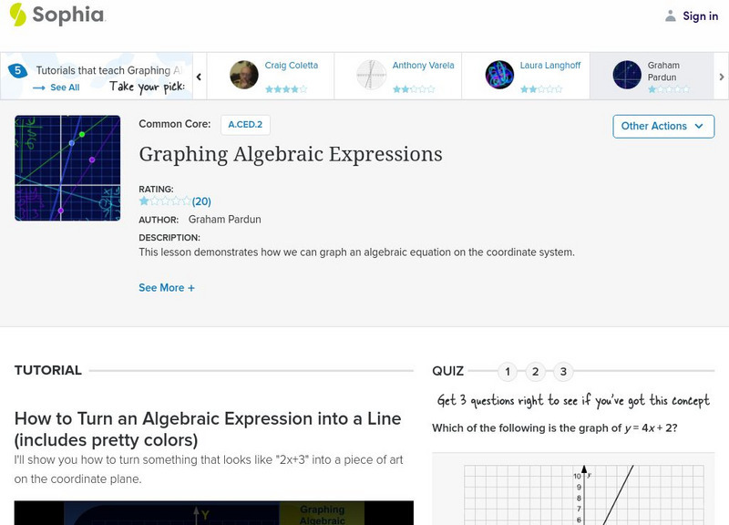 Evaluate and algebraic expression to determine how to graph an equation on the coordinate plane. Assess learning with a quiz.