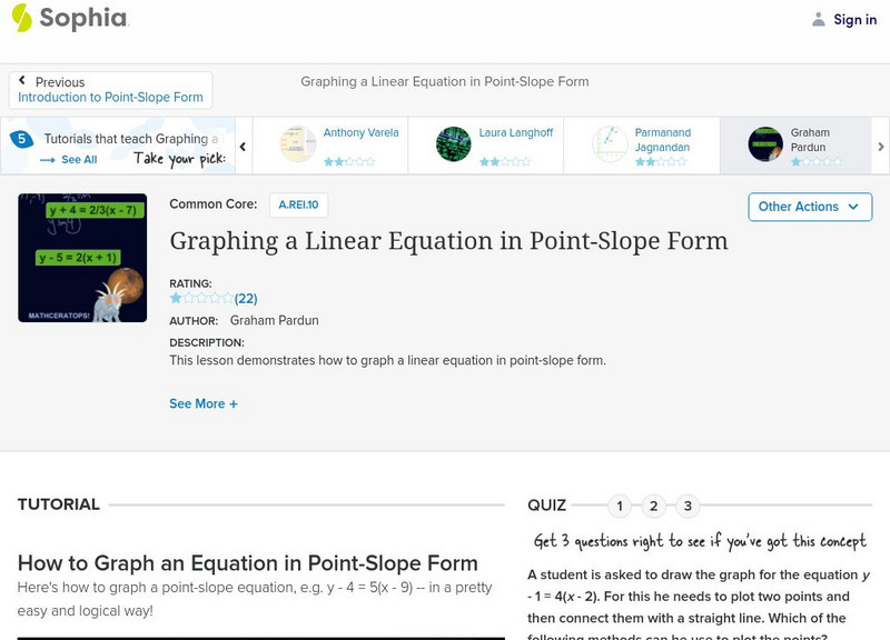 Explore how to graph a linear equation in point-slope form then assess learning with a quiz.