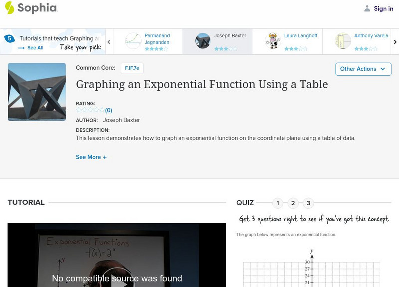 Use a table of data to graph an exponential function on coordinate plane. Assess learning with a quiz.
