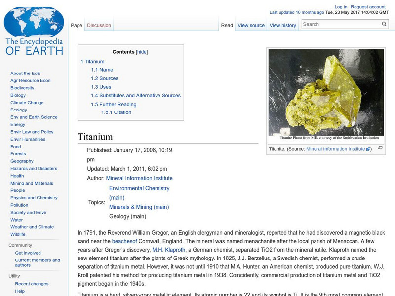 Encyclopedia of Earth: Titanium