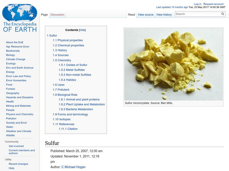 Encyclopedia of Earth: Sulfur