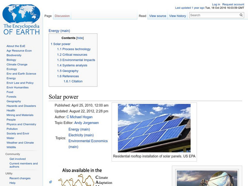 Encyclopedia of Earth: Energy: Solar Power