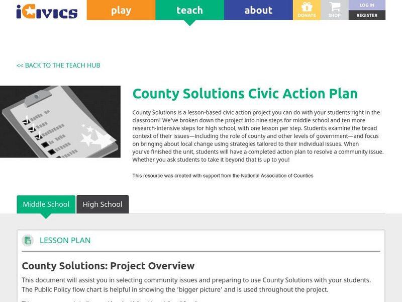 County Solutions is a lesson plan-based civic action project. Young scholars examine the broad context of their issues-including the role of county and other levels of government and focus on bringing about local change using strategies...
