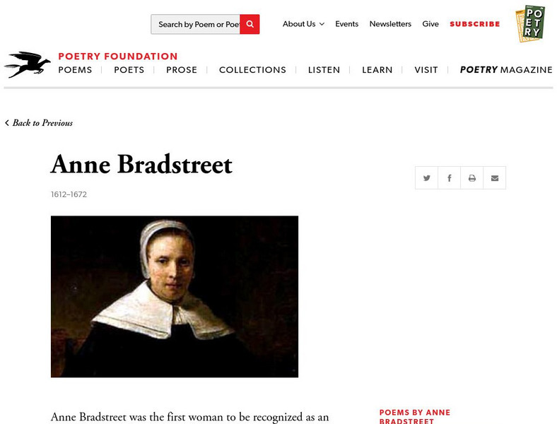 Poetry Foundation: Anne Bradstreet (1612 1672)