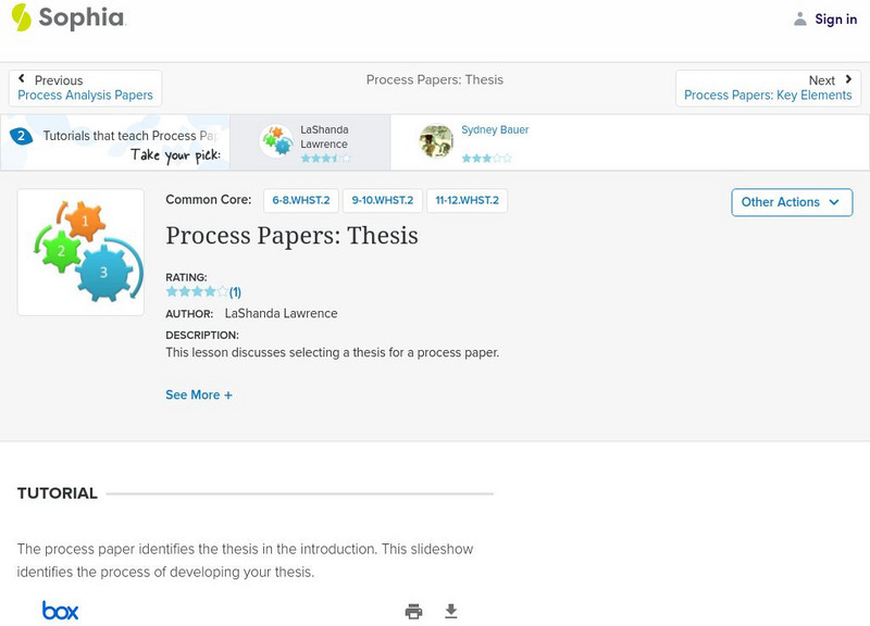 This lesson discusses selecting a thesis for a process paper. It is 1 of 2 in the series titled "Process Papers: Thesis."