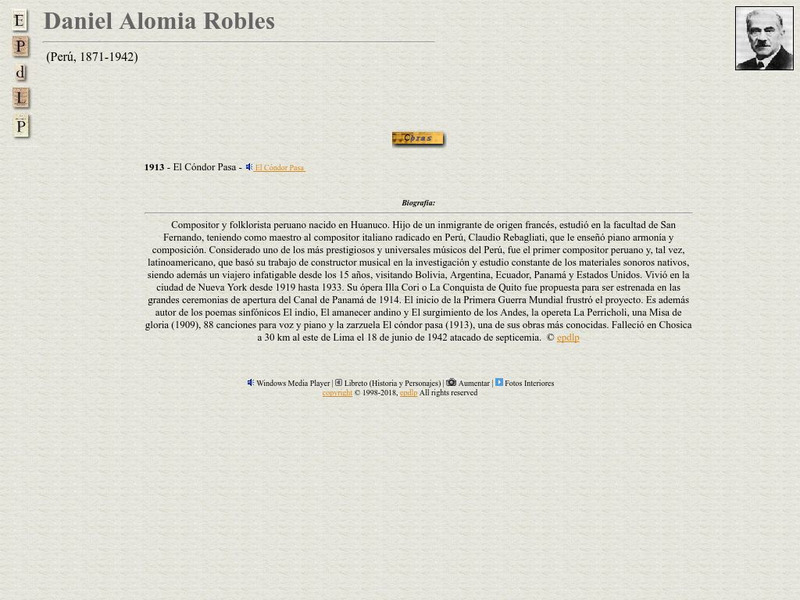 This page has a brief bibliography of the Peruvian composer and folklorist Daniel Alomia Robles.