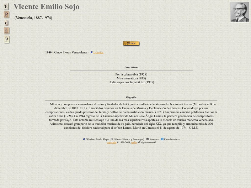This page has a brief bibliography of the Venezuelan musician and composer Vicente Emilio Sojo.