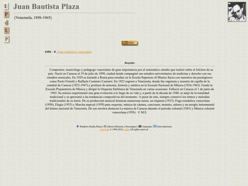 This page has a brief bibliography of the Venezuelan musician and composer Juan Bautista Plaza.