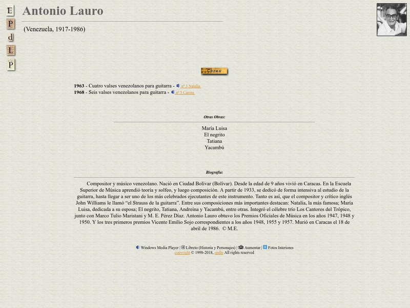 This page has a brief bibliography of the Venezuelan composer Antonio Lauro.