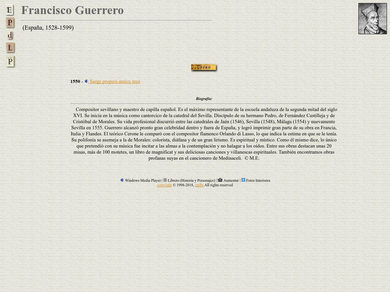 This page has a brief bibliography of the Spain composer FranciscoGuerrero.
