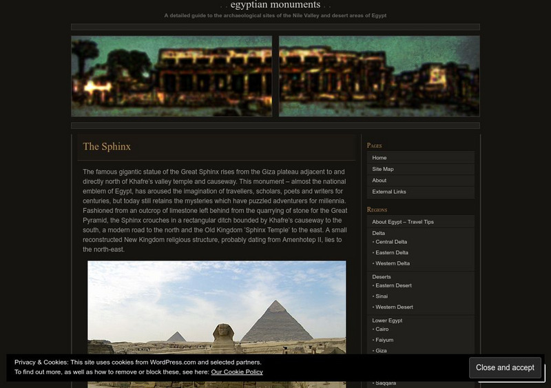 Cool site explores over 1500 years of ancient Egyptian history. Includes pictures and descriptions of the highlights of Egypt. Don't skip the section on mummification!