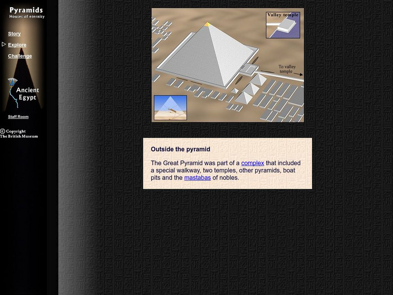 Contains an interactive 3-D illustration that allows one to navigate a website containing information and images of the Great Pyramid and surrounding structures.