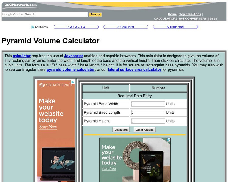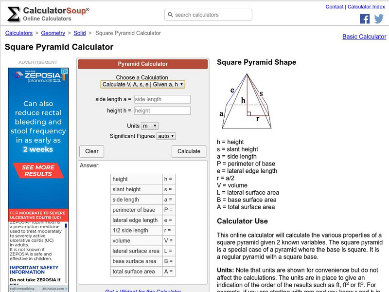 Calculator Soup: Square Pyramid Calculator