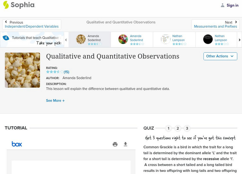 Sophia: Qualitative and Quantitative Observations: Lesson 1