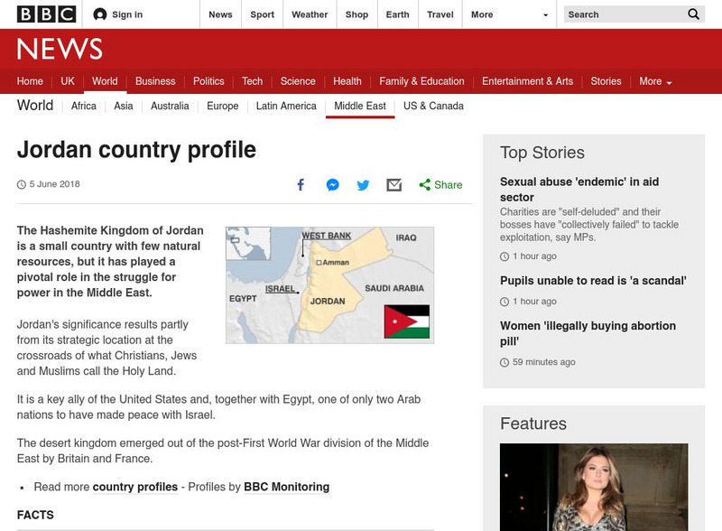 The BBC provides a general overview of the country of Jordan. Content includes a focus on Jordan's recent history, leaders and media, a Jordanian timeline of key events, and much more.