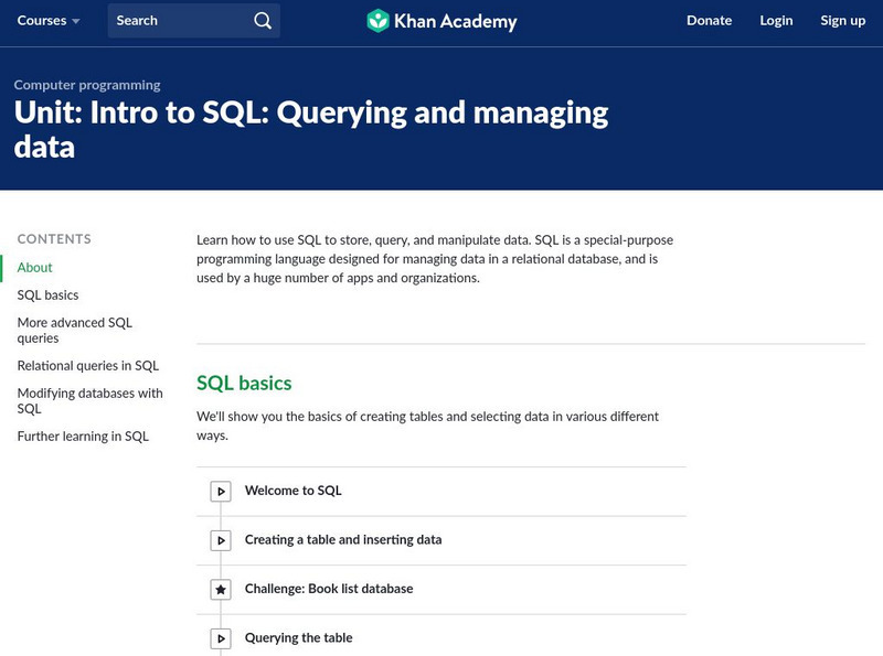 Khan Academy: Unit: Intro to Sql: Querying and Managing Data