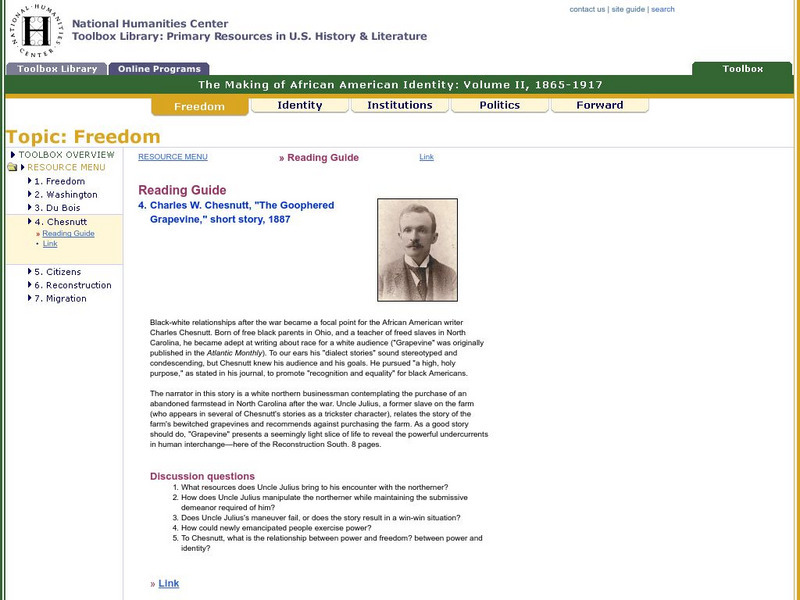 National Humanities Center: Toolbox Library: Freedom: Charles W. Chesnutt: African American Identity