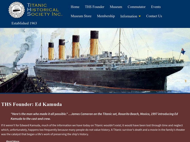 This is the official site for The Titanic Historical Society. View pictures of artifacts from the Titanic housed at the museum.