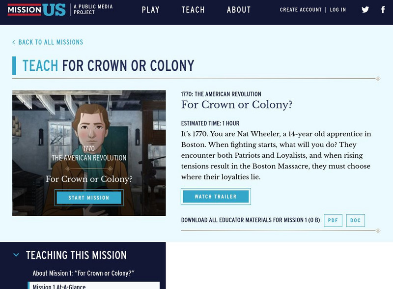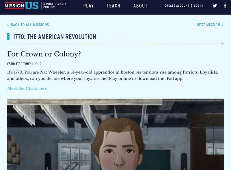 [Free Registration/Login Required] Interactive game puts players in the shoes of Nat Wheeler, a printer's apprentice in 1770 Boston. They encounter both Patriots and Loyalists, and when rising tensions result in the Boston Massacre, they...