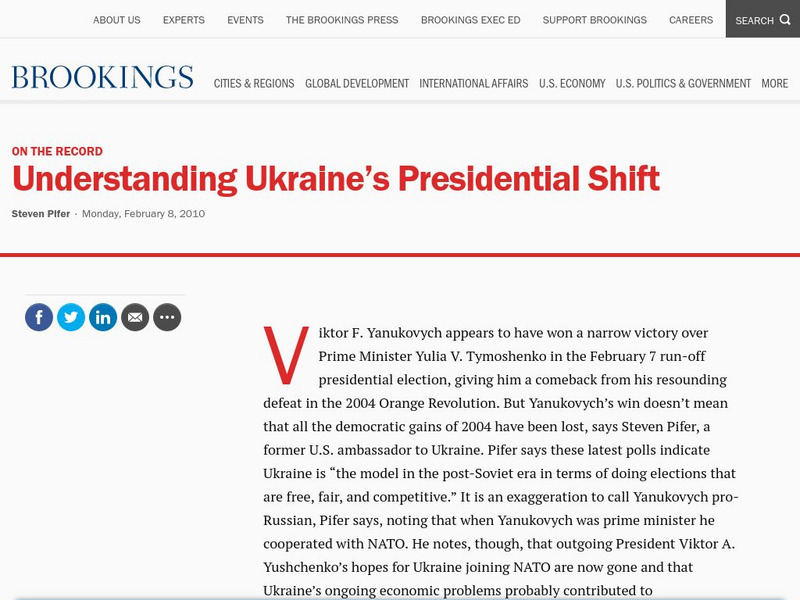 Brookings Institution: Understanding Ukraine's Presidential Shift