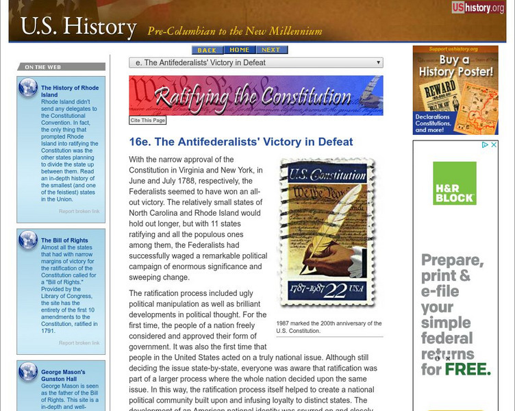 This site is provided for by the University of Groningen. Learn about the struggle for approval by the states of the U.S. Constitution, continuous disagreements after the Constitutional Convention between the Federalists and the...