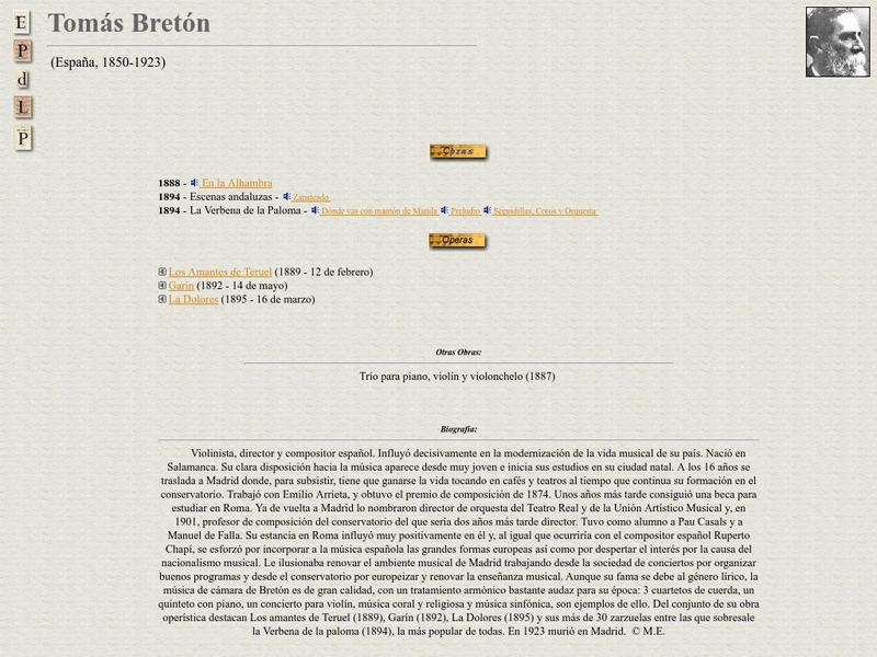 This page has a brief bibliography of the Spanish composer and violinist Tomas Breton.