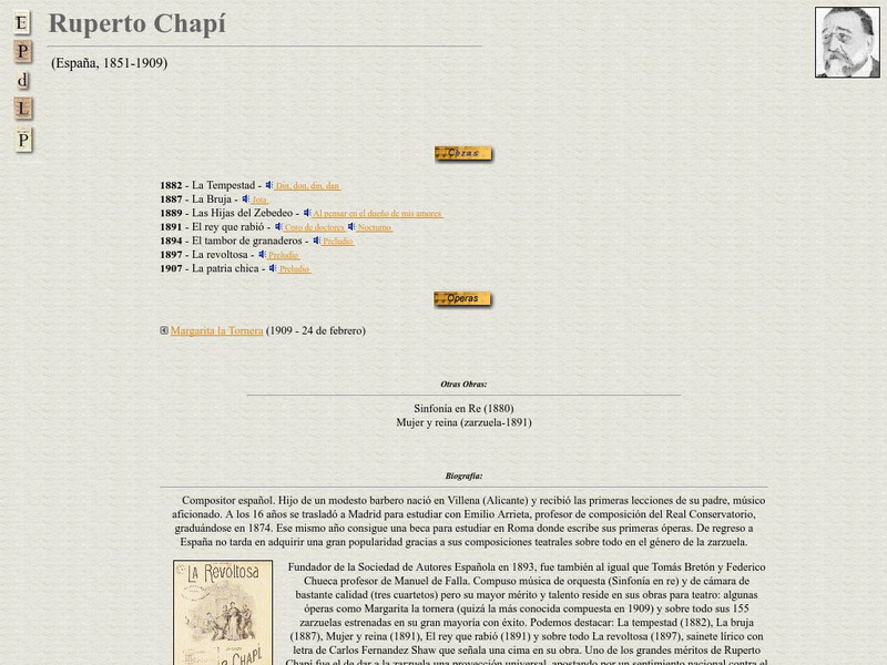 This page has a brief bibliography of the Spanish composer Ruperto Chapi.