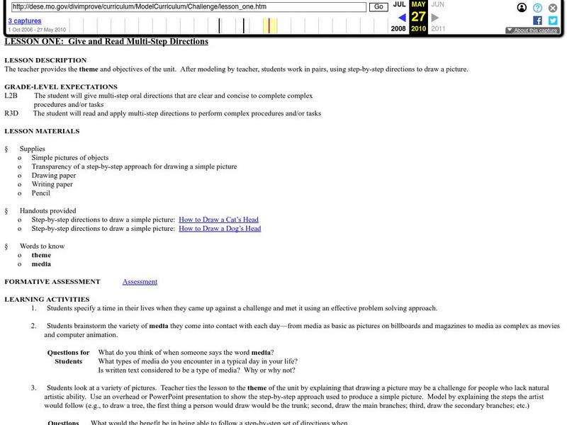 Mo Dept. Of Ed.: Give and Read Multi Step Directions
