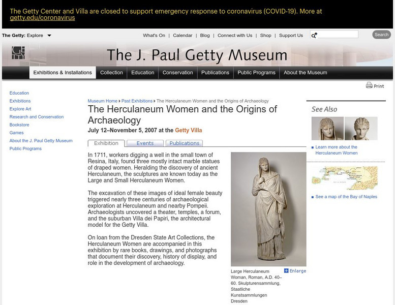 Website for the 2007 exhibit The Herculaneum Women and the Origins of Archaeology at the Getty Museum. Describes how the discovery of three marble statues in Italy in the 1700s led to centuries of archaeological exploration in the area....