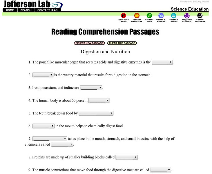 Jefferson Lab: Reading Passages: Digestion and Nutrition