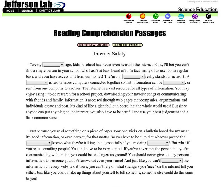 Jefferson Lab: Reading Passages: Internet Safety