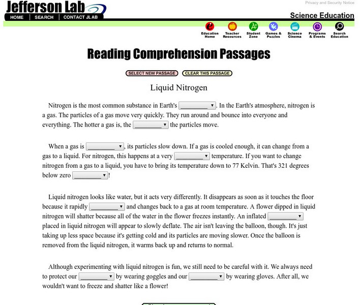 Jefferson Lab: Reading Passages: Liquid Nitrogen