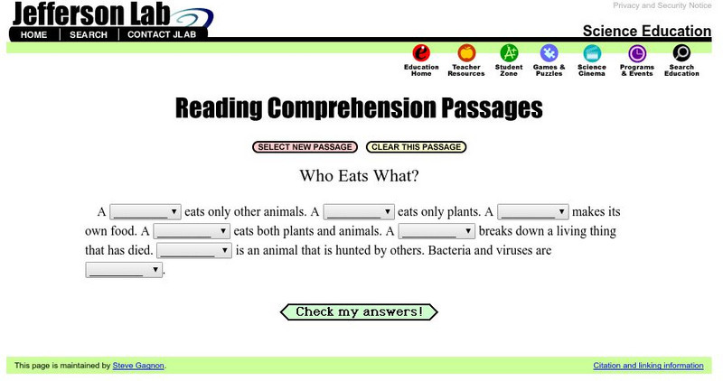Jefferson Lab: Reading Passages: Who Eats What