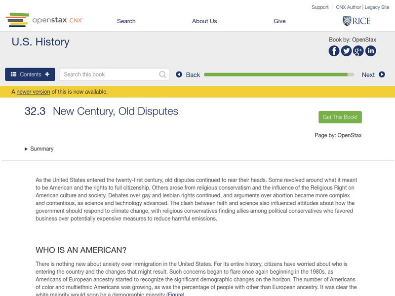 As the United States entered the twenty-first century, old disputes continued to rear their heads. Some revolved around what it meant to be American and the rights to full citizenship. Others arose from religious conservatism and the...