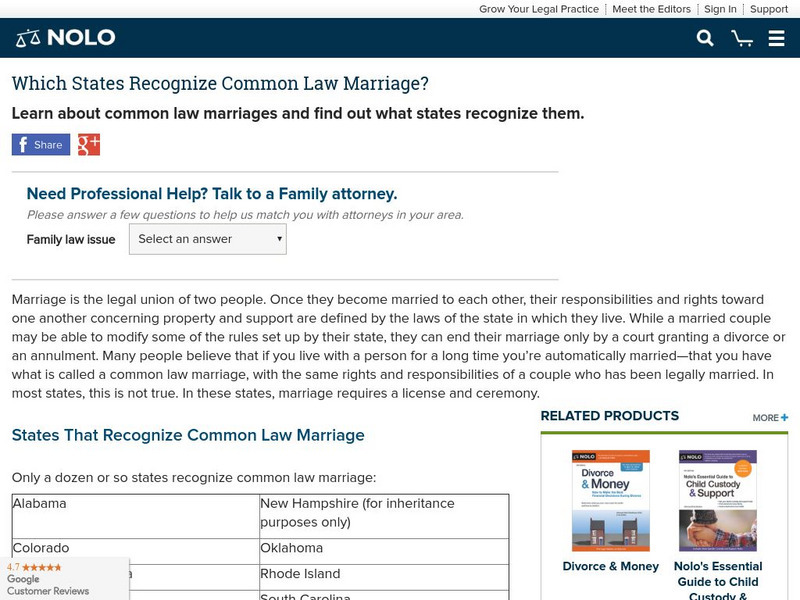 This resource provides the definition and conditions of common law marriage and notes which states recognize this type of relationship.
