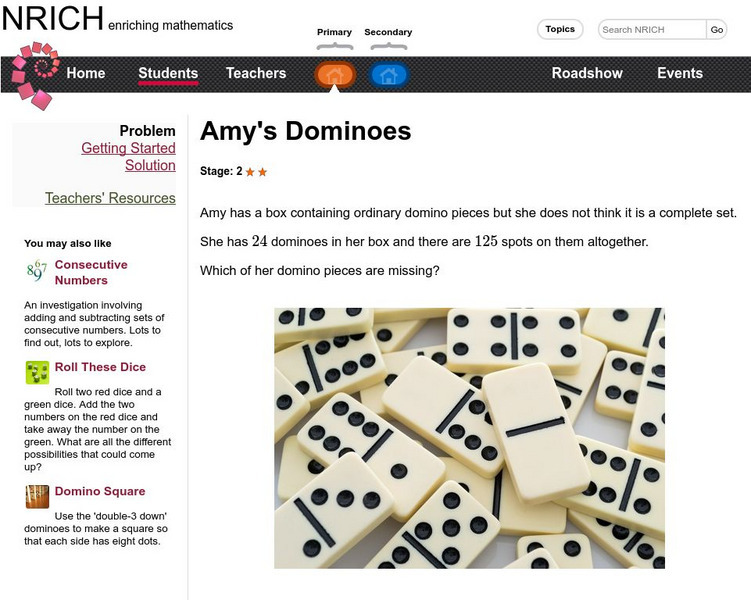 University of Cambridge: Nrich: Amy's Dominoes