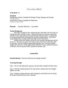 Students practice solving math equations by analyzing chocolate recipe measurements. For this chocolate baking math lesson, students read about the Hershey factory and recipes used to create chocolate bars. Students solve problems and...