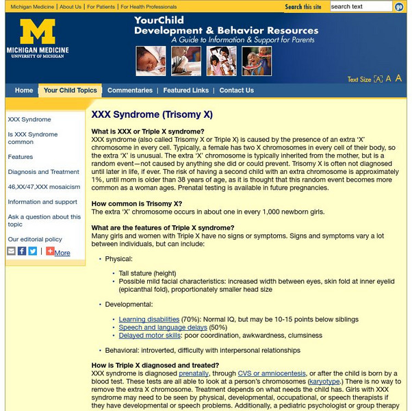 University of Michigan Health System: Your Child: Xxx Syndrome (Trisomy X)