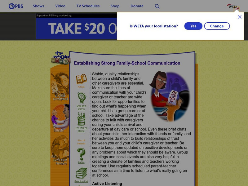 A comprehensive site devoted to strengthening the ties between families and schools. Ideas for keeping channels of communication open and for helping teachers understand and appreciate your child. Sound advice with links to do's and...